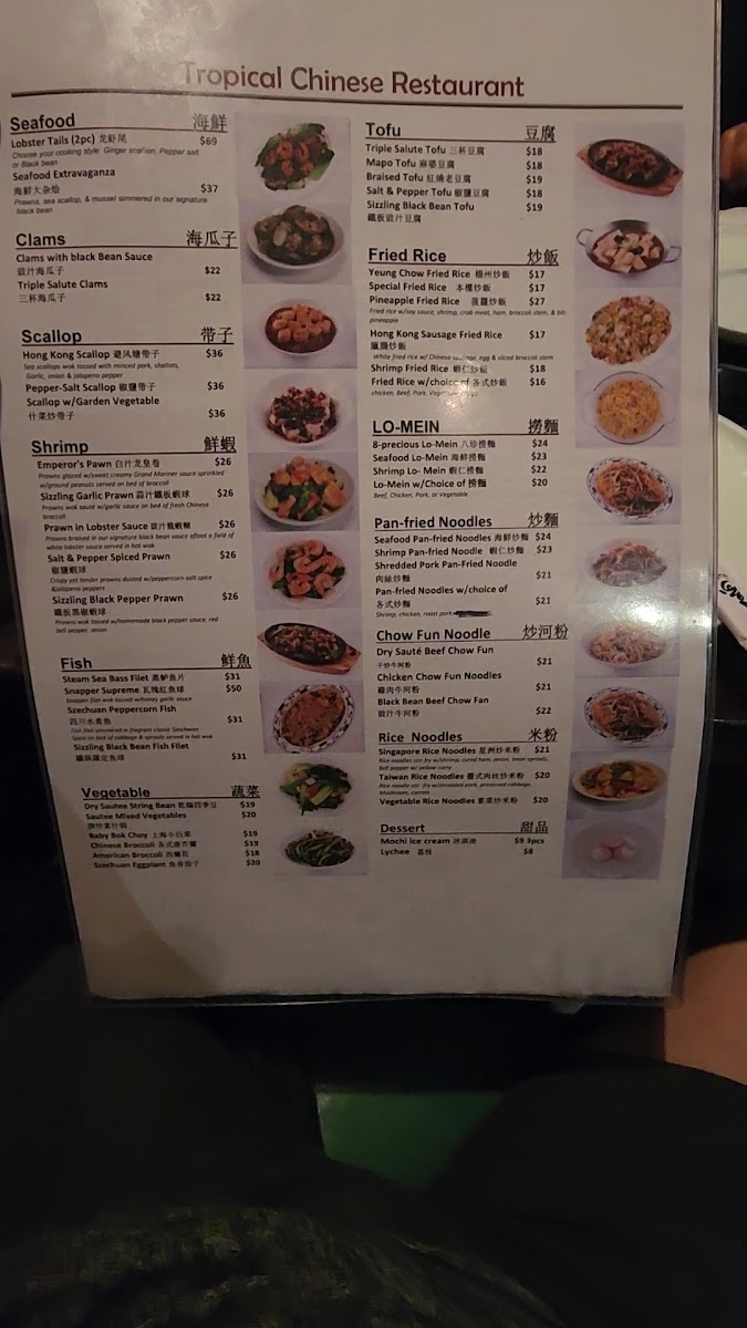 Welcome to Tropical Chinese Restaurant, a culinary treasure located at 7991 Bird Rd, Miami. This dining haven specializes in authentic Chinese cuisine, impressing guests with its vibrant flavors and fresh ingredients. The star of the menu is undoubtedly the Dim Sum, served fresh from carts that roll through the dining area, allowing you to indulge in a variety of delectable dumplings, including shrimp and pork options.